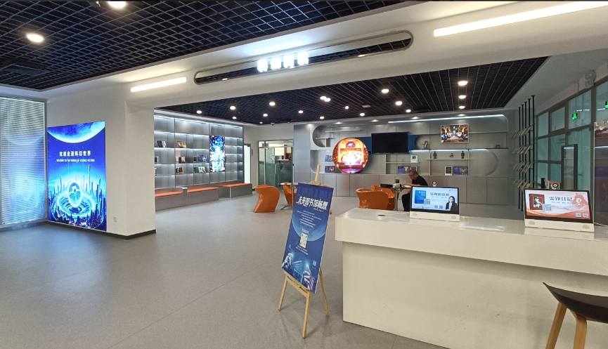 科幻阅读区:汇集银河奖、雨果奖、星云奖获奖科幻作品,以及刘慈欣作品集等热门书籍,并精选科幻作品里的未来图书馆内容进行展示,营造沉浸式的阅读场景。